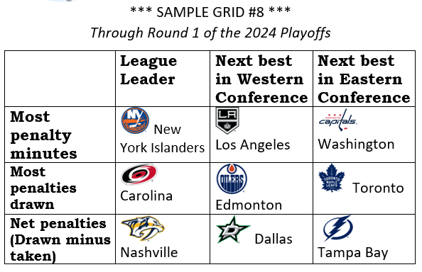 | NOTE: Vegas or Dallas can also earn a point in the middle, "Longest Series in the West" square. |